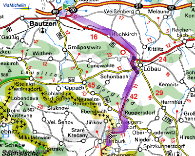 Nach Ortsschild Seifhennersdorf rechts.Stopstr.rechts,ca.1.8km Bushaltestelle(Rumburger Grenze) gerade aus über Brücke (Querstr.)gerade aus bis ende der Str. Dann Str.überqueren.Das istSüdstr.43 Landmannsheim.